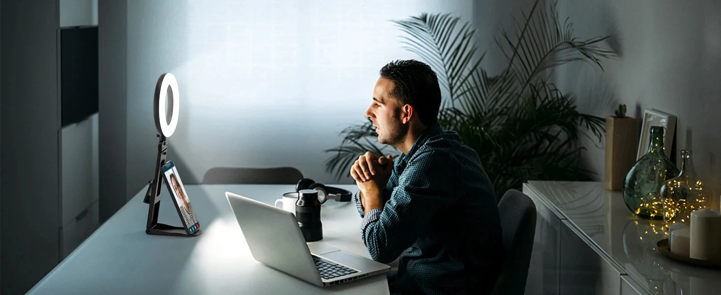 2.All-in-one Service: desktop ring light adopts a new construction design to provide a new All-in-one solution for ring video light for cell phone fixing, you can place your cell phone Ipad on the stand, the operation is very simple, you can use our stand for cell phone video call anytime and anywhere, our fill light will assist you to show your best to your family and friends, light up your beaut.